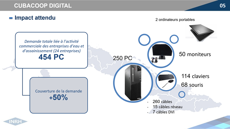 L’image ci-dessous présente l’impact global du projet. A ce jour 250 ordinateurs ont déjà été envoyés à l’INRH et sont en cours d’installation.