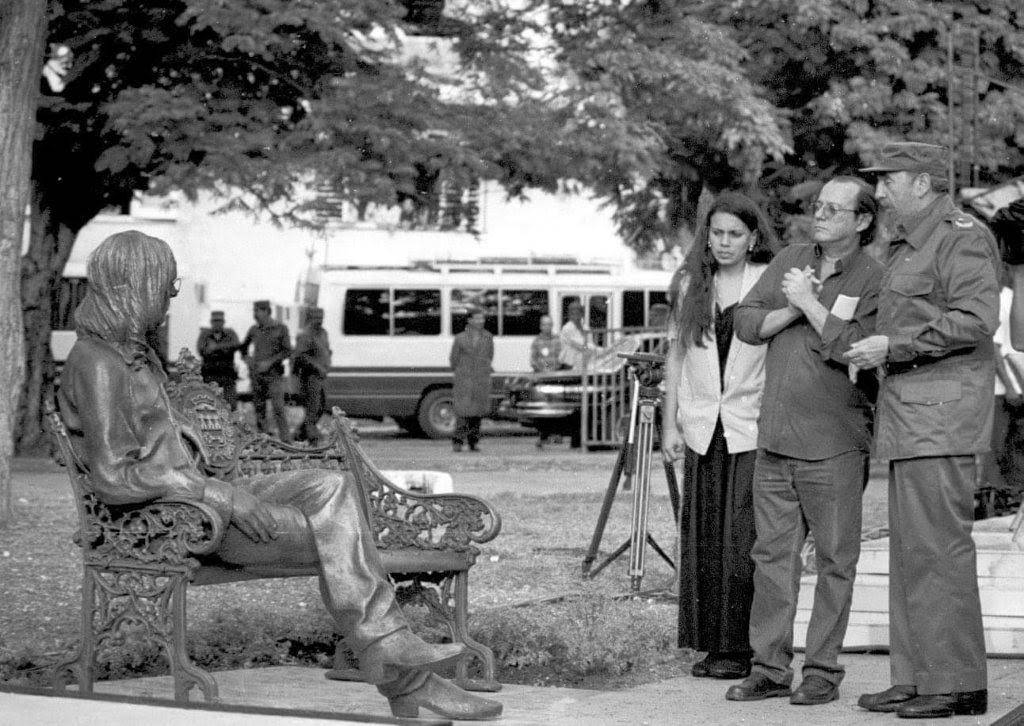 Silvio Rodriguez en compagnie de Fidel Castro dans les années 2000 (?) devant la statue dédiée à John Lennon - Calle 8 e/ 15y17 - Photo collection personnelle